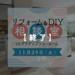 2025年9月8日 / 最終更新日時 : 2025年12月4日 ellereform DIYスタジオ・エル 【クリナップの練馬ショールーム】リフォーム相談室開催! 11月29日(土)人気の『リフォーム&DIY相談室』。 今回の会場は、クリナップのショールーム。憧れの木製天板キッチンや、共働きに嬉しい最新の浴室設備を、実際に“見て・触れて・相談”できる1日限りの特別開催です。 見どこ […]