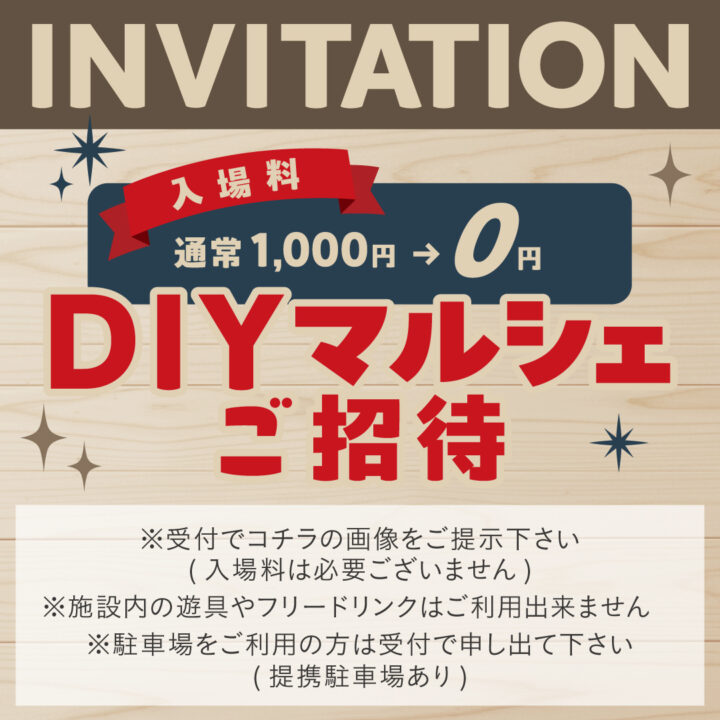 受付にて、こちらの「DIYマルシェご招待」画像をご提示ください。