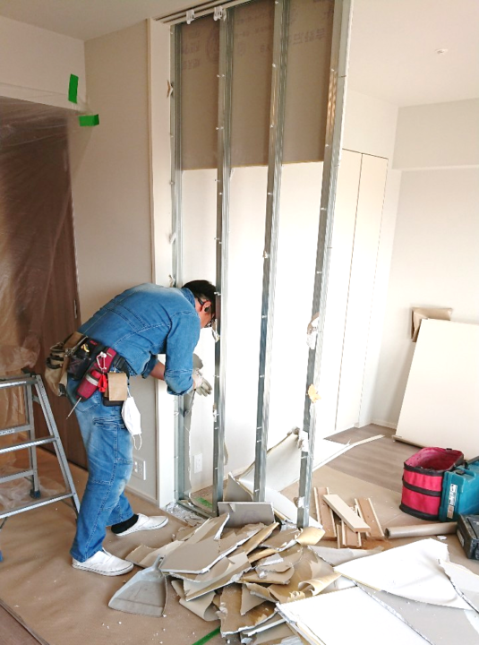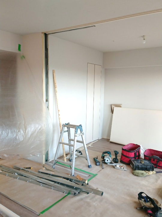 LDKを広いワンルームにしたいとの事で、洋室との間仕切りの撤去を行いました。