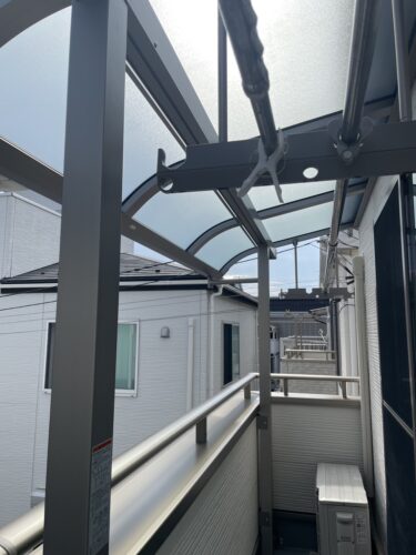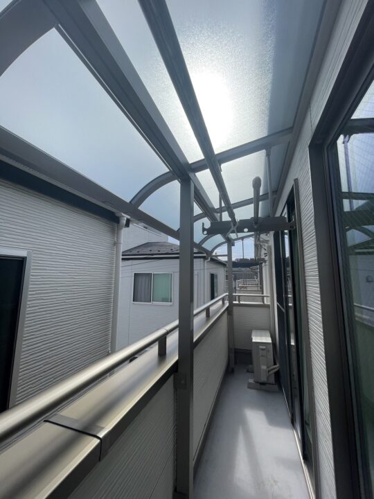 2025年8月29日 / 最終更新日時 : 2025年8月29日 ellereform 部分リフォーム WORKS 109 バルコニーに屋根を設置 バルコニーに屋根を設置 ~雨の日でも洗濯物が外干し可能~ バルコニーに屋根がないのが不便との事でご依頼いただきました。設置後は…「雨の日でも洗濯物が干せました!」「お部屋の中も暑くなくなりました!」等とてもご満足いただけたようです。 Data 参考施工費用 約40万円 施工期間 1日 施工内容 バルコニーに屋根を設置 (屋根:LIXIL スピーネR 熱吸ポリカ) 屋根取付工事 等 施工の様子を見る Before After